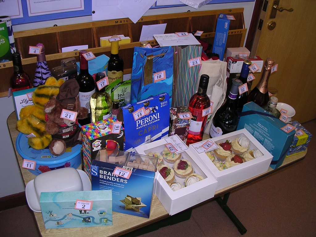 Sheila and Kath had worked extremely hard on both some lovely food (pizza, salad and FOUR different desserts!) and numerous activities to extract cash from everyone. These included a treasure hunt, bingo, guess the number of sweets in the jar and an enormous raffle with well over fifty prizes.