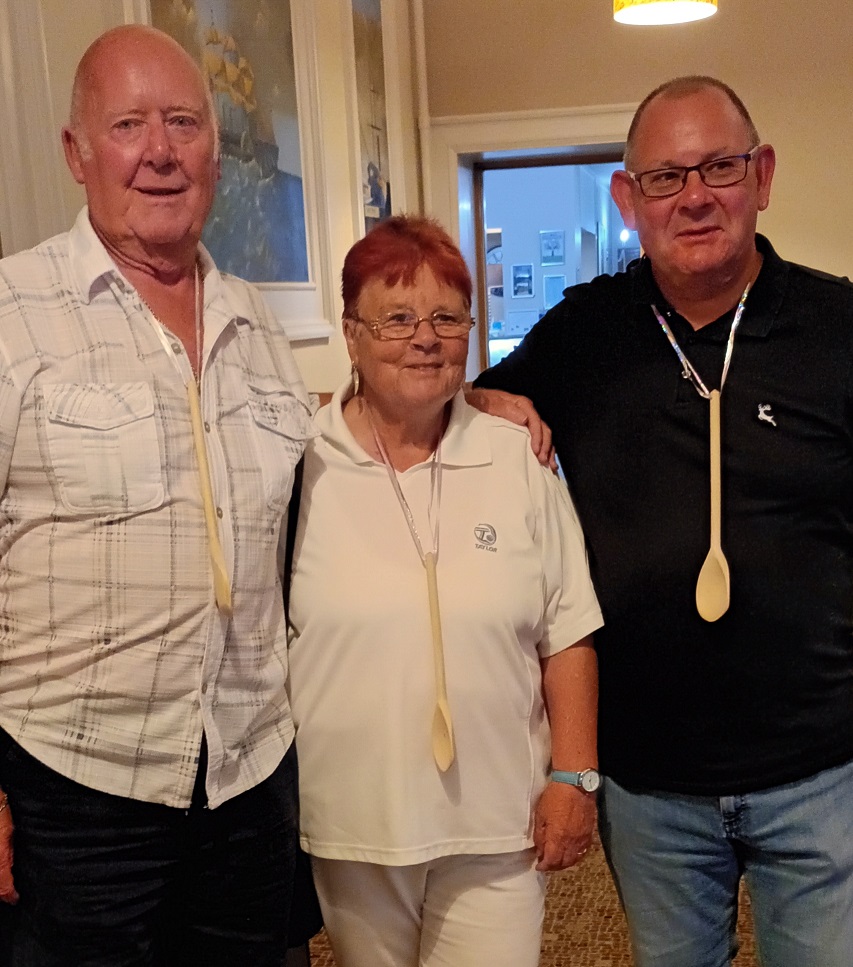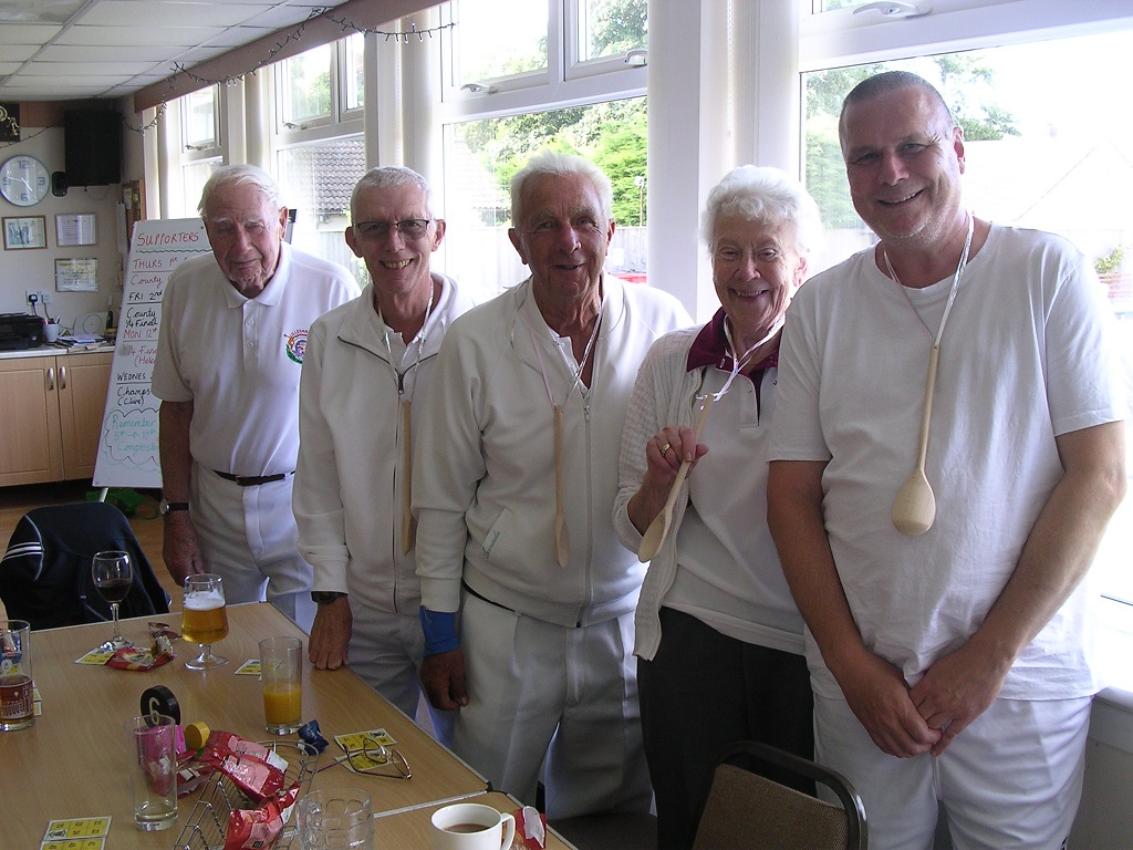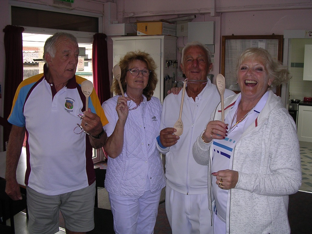 Captain Sheila presented losing rinks with wooden spoons - to be worn at all times lest a fine became due - and top rinks received bags of sweeties (with one or two successful bowlers close to opening a sweet shop by the end of the week).