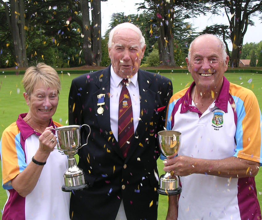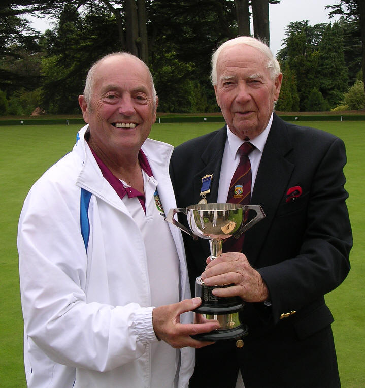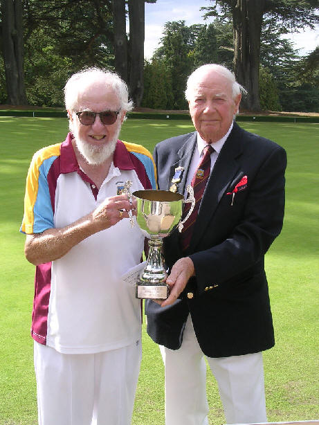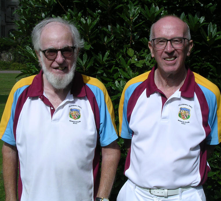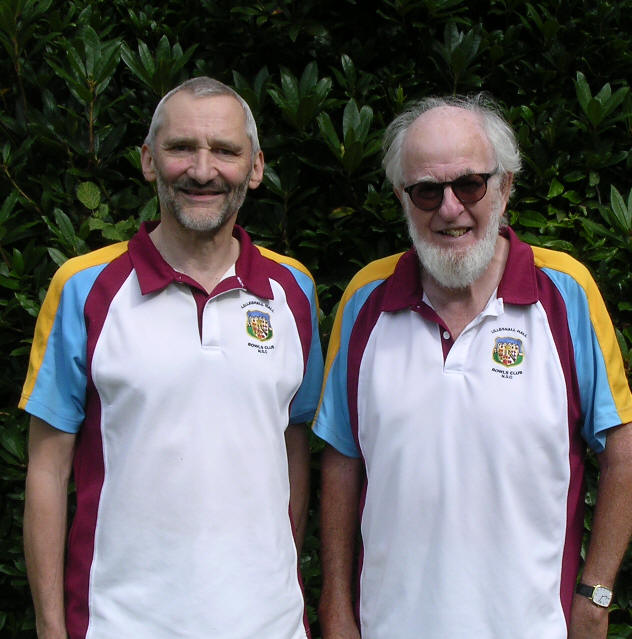 This match saw Mike Caird & Quentin, both playing their third final, up against last year's runners-up Peter Hancock and Bill Greenway. All players found their form quickly and after a trailed jack with his last bowl gave Quentin and Mike two shots on the first end the second end was tied with the umpire declaring both bowls touching the jack.