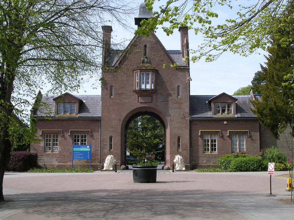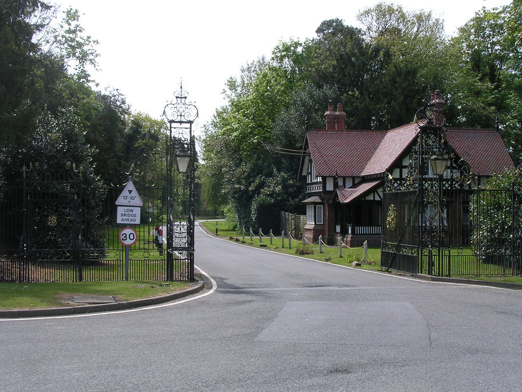 Walk out from the car park (did you bring a trolley for your bowls bag?), cross the road towards the larger buildings (follow signs for reception) and walk towards the archway guarded by lions.