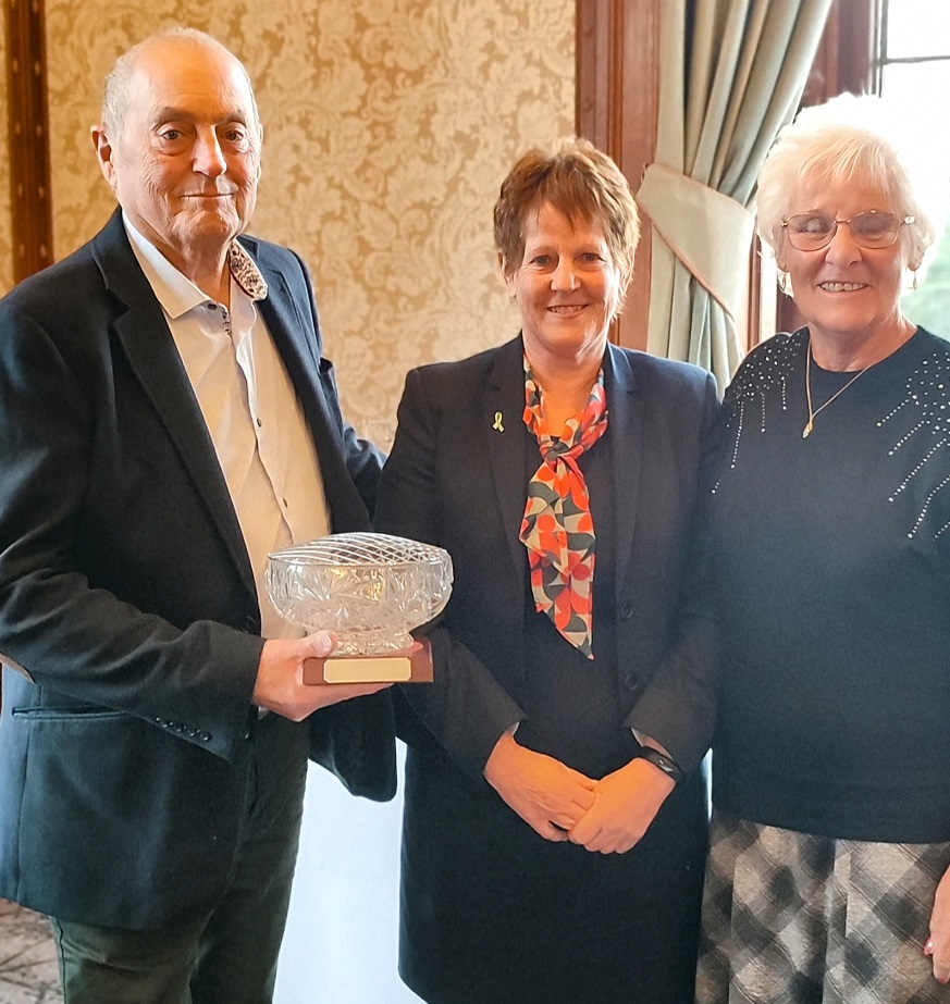 While the winners of the various bowls competitions were known, two further awards were made. Captain Sheila Payne chose Steve Turner to receive her Captain's Award for 2024, recognising the work he had put in selling surplus items from the clubhouse to both free up space and raise funds. She also announced the winner of the Cyril Davies Tour Trophy as Chris Sherriff, recognising his excellent woodworking skills which were put to great use making "jack-in-the-box" jack holders which were presented to the clubs we visited on tour.