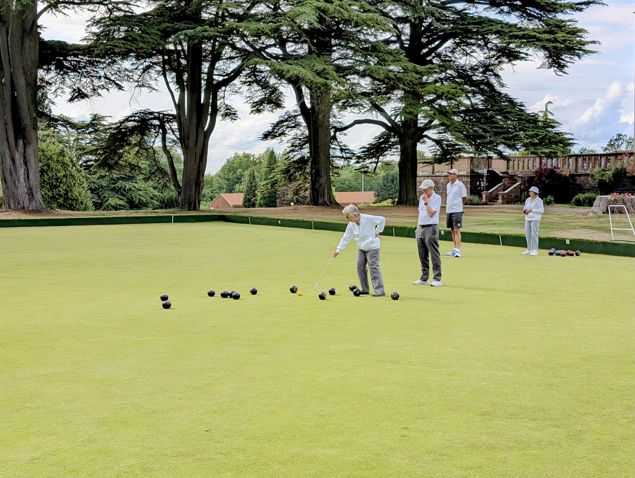 Eighteen members took part in the Jack Bayliss Cup drawn 4-wood pairs competition. The nine pairs were split into three mini-leagues of three who played a round-robin over seven ends per game. The three league winners, plus the best runner up, progressed to semi-finals and final, played over six ends each.