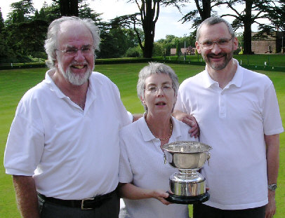 The final, also over eight ends, saw Derek, Pauline and Emrys run up a lead, which was clawed back to leave the teams at five all and force an extra end. The champions were holding two shots and had well placed defensive woods, but Ruth's last wood drew off the shot wood to take a single and the match. Previous Winners (Aug. 2004)