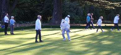 The final end was nail-biting, with the shot changing several times. Quentin drew a toucher with his last wood, leaving Frank one wood to save the situation. Frank bowled a marvellous pressure wood which moved both the shot wood and the jack but failed to take the shot - leaving Beryl and Quentin winners by the smallest of margins.