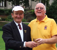 The final, also played over six ends, was closely fought, with the jack twice being dispatched to the ditch. Needing five shots for a draw on the last end Ted and Emrys only managed three, leaving David and Frank winners by two shots. This was Frank's first win in the competition, whilst David has two previous wins. Previous Winners (Aug. 2004)