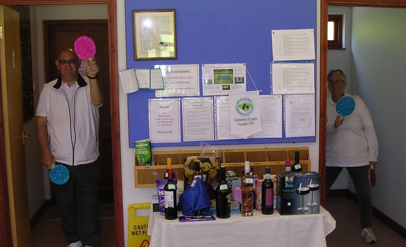 Members turned out in slightly inclement weather to support Captain Sheila and Presdient Kath's charity day. The bowling was tackling Chris Sherriff's fiendish challenge rinks which included fixed and off centre jacks, poker cards, snooker breaks and more!