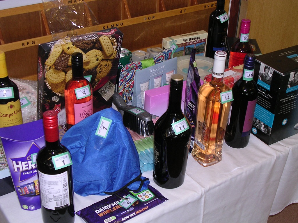 Other delights to part member and guests from their cash included guessing the number of sweets in the jar, a spider for a bottle of Welsh gin and an enormous raffle with 30+ donated prizes. More fun was had with Kath's quiz and episode of our own "Mr & Mrs", won by Barbara and Steve Turner.