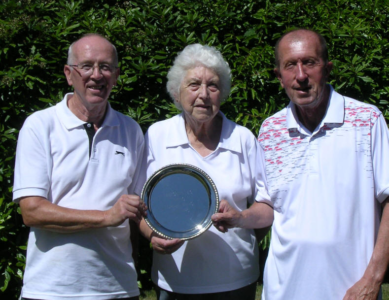 A combination of illness and holidays meant only twelve club members took part in the Matthews Plate ladies' and men's drawn pairs competitions. Luckily there were six men and six ladies, allowing a simple three-team round-robin league in each competition played in blistering sunshine. Each pair played the other two over eight ends of four bowl pairs.